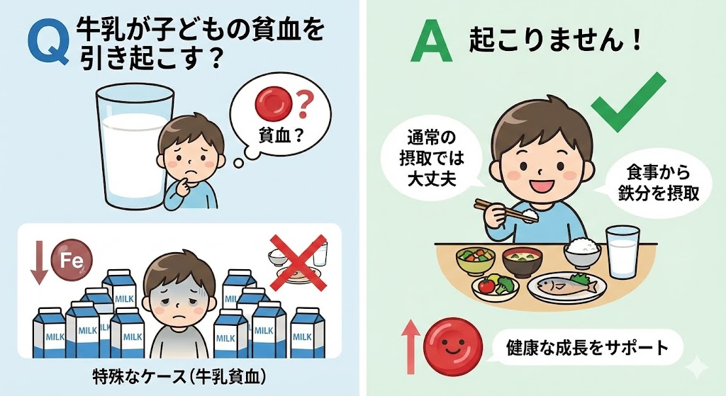 Q 牛乳によって子どもの貧血が引き起こされることがある?
